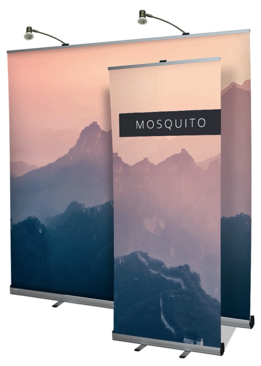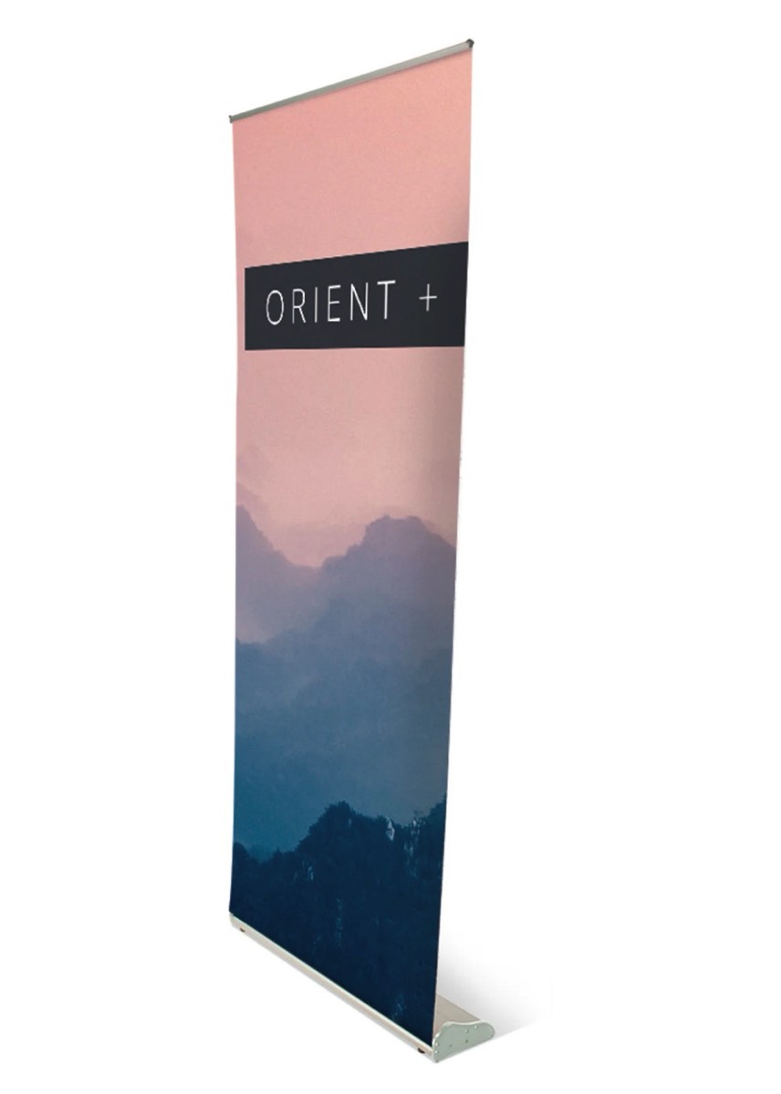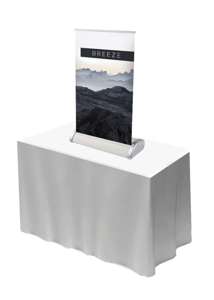 O mini roll-up Breeze é ideal para usar numa mesa ou balcão de receção. Muito leve e simples de montar, oferece uma forma profissional e elegante de expor uma mensagem.